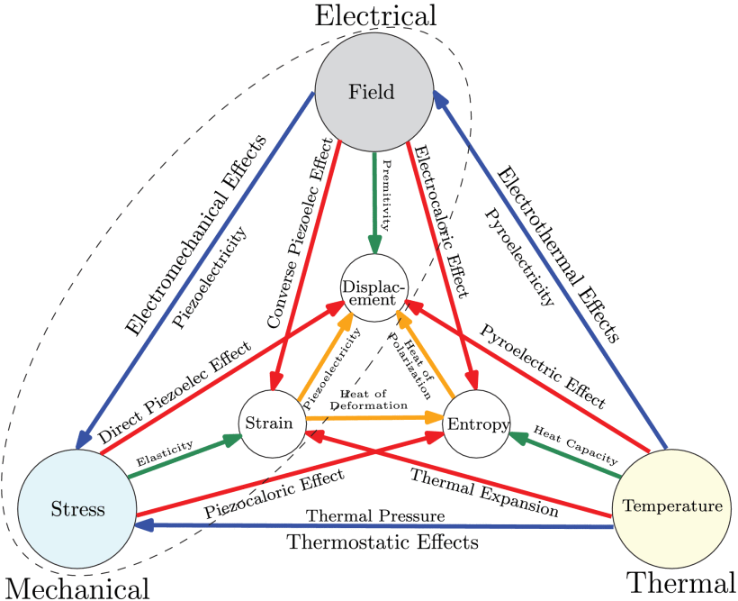Consider a crystal made of a combination of elements, for example Gallium Nitride. In GaN it’s possible to get a polarization of the unit cell, with a more negative charge on one side, and a positive charge on the other side. The polarization comes from an asymmetry in the electron and nucleus distribution within the material.