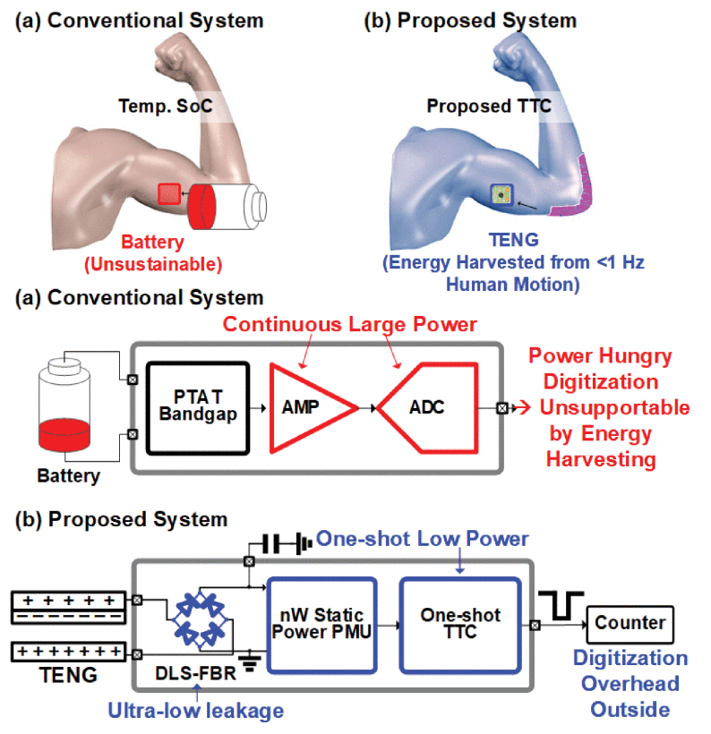 Take a look in A Fully Energy-Autonomous Temperature-to-Time Converter Powered by a Triboelectric Energy Harvester for Biomedical Applications for more details.